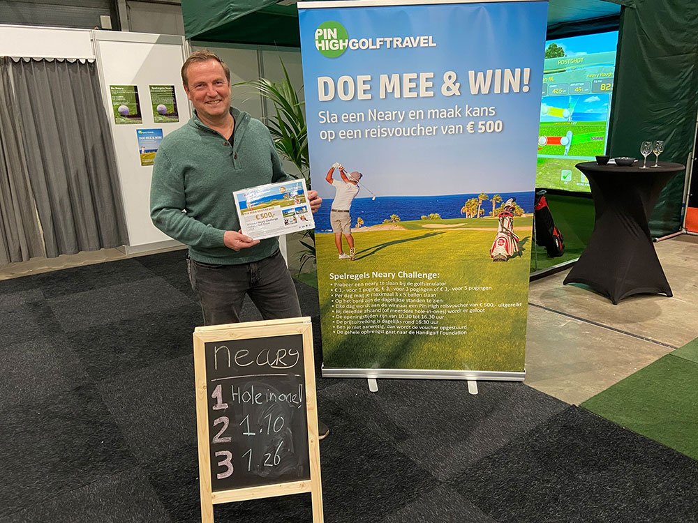 Visitors can participate in the Neary on the simulator and try to hole the long putt.